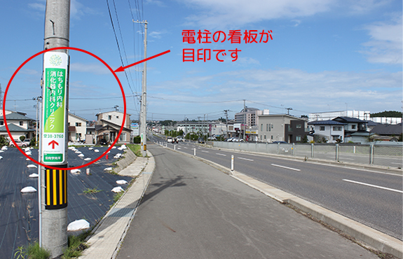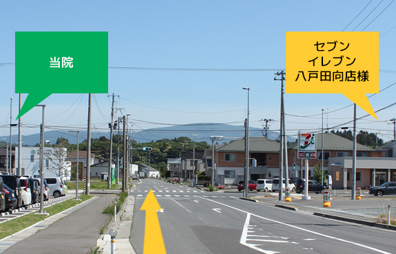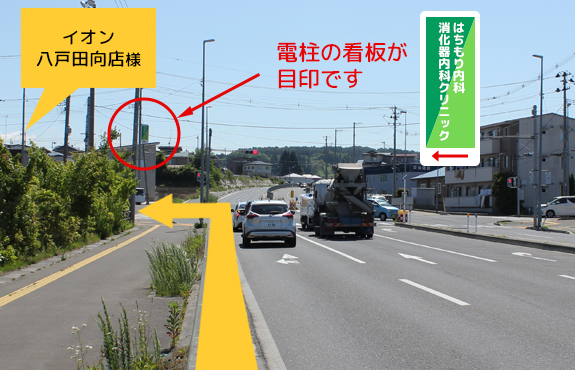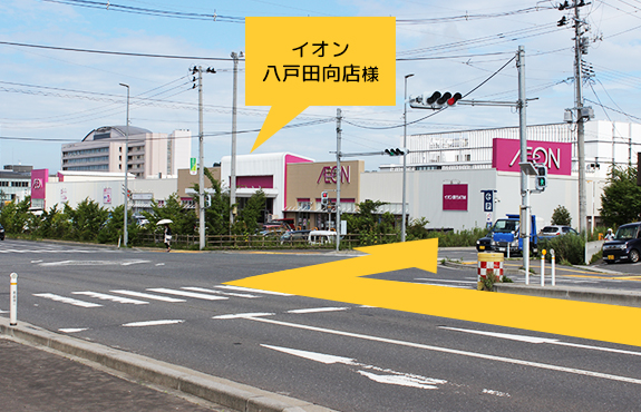 イオン八戸田向店手前の信号のある交差点を右折します。