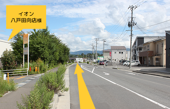 イオン八戸田向店の脇を過ぎたら信号のある交差点を左折します。