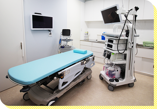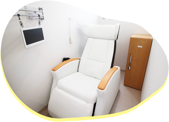 大腸内視鏡検査の前処置が不安な方へのお部屋です。リクライニングチェアでテレビを見て頂きながらリラックスした環境で前処置の下剤を飲んで頂きます。