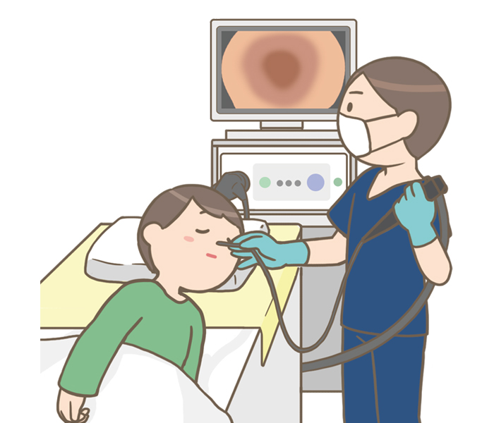 鼻腔に局所麻酔をかけ、鼻から鼻腔内用の胃カメラを入れます。鎮静剤を使わないことが可能なため、検査後すぐに帰宅できます。