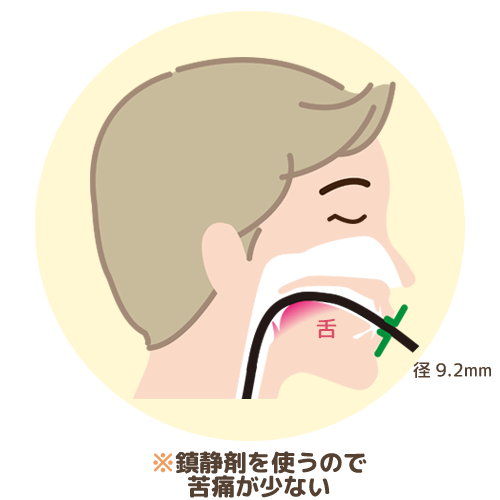 喉に局所麻酔をかけ、口から胃カメラを入れます。精度の高い検査が可能です。